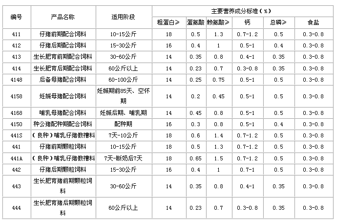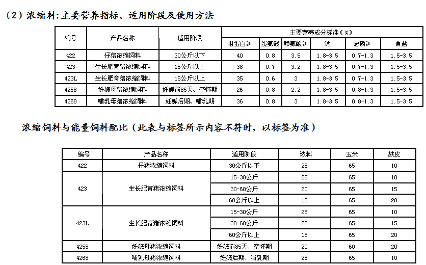 (1)全價料:主要營養指標、適用階段及使用方法 |